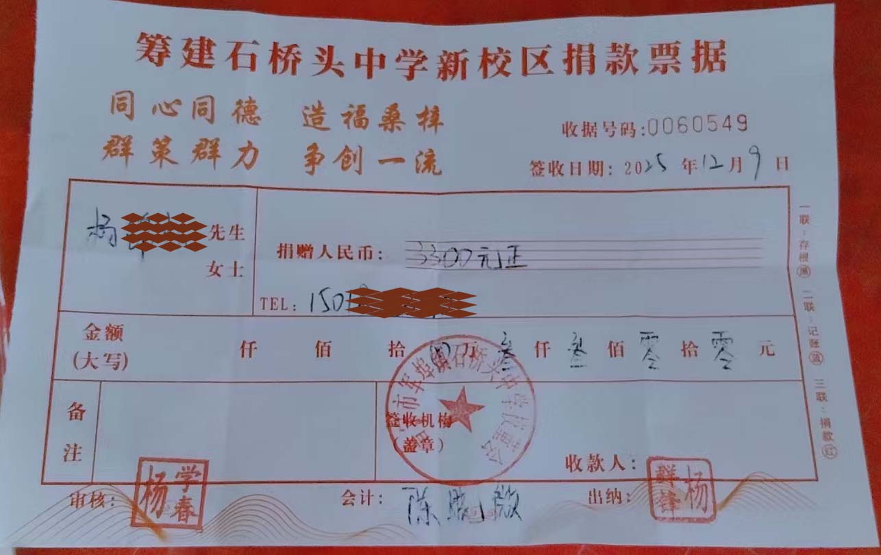 »捐资母校,情系石桥头新校区 [2025/12/9 17:14:23]
